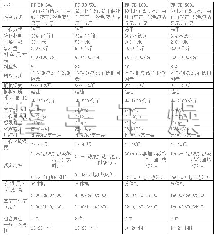 30平米以上凍干機規格性能(不帶速凍功能;料盤懸掛吊車輸送)